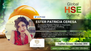 Partecipo, insieme a realtà importanti, all’organizzazione di eventi di rilievo nazionale sia sul tema dell’ipnosi che in generale del benessere psicofisico, oltre ad intervenire come relatrice in numerosi congressi internazionali. Uno degli ultimi mi ha visto coinvolta nel Global Health Safety & Environment Summit a Frankfurt.